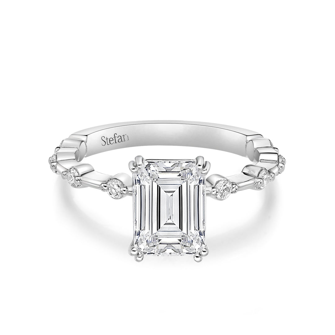 Our emerald cut engagement rings are perfectly crafted to showcase the brilliance of the emerald cut.With their elongated shape and faceted surfaces, these rings exhibit the exquisite sparkle of each carefully chosen diamond. A Stefan Diamonds emerald cut engagement ring will be treasured for generations.