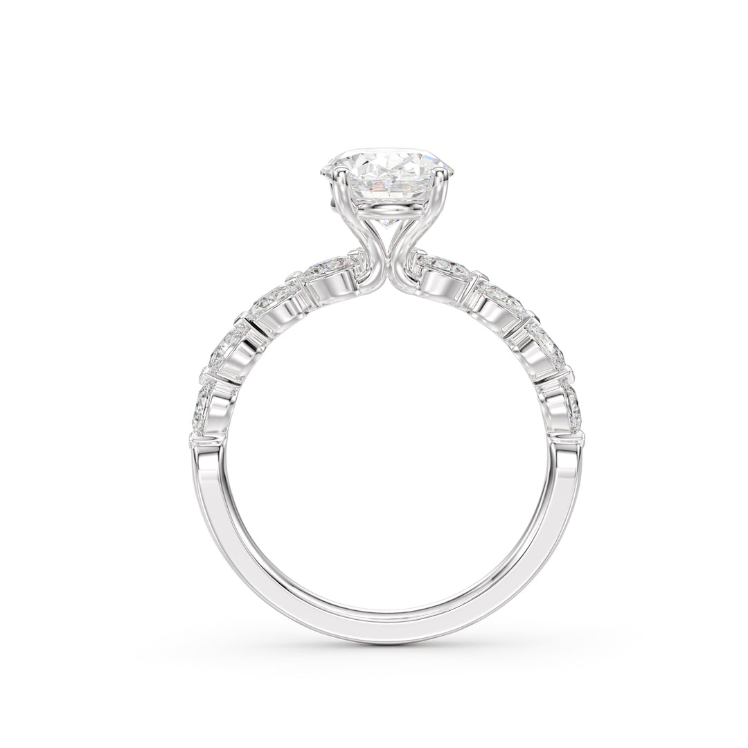 Stefan Diamonds oval engagement rings collection showcases the remarkable versatility and brilliance of its shape, making it an embodiment of timeless sophistication that will be cherished for years to come. Oval engagement rings encapsulate a remarkable harmony of elegance, modernity, and individuality, offering a fresh alternative to the traditional round diamond cut. This shape is favoured by those who seek a distinctive yet timeless piece, as its sleek, symmetrical elongated design symbolizes balance and continuity. For a deeper exploration of the various meanings behind diamond shapes, visit our diamond education page.