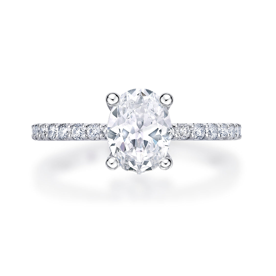 Elevate your love story with the timeless allure of our elegant oval diamond engagement rings. The symmetrical curves and brilliant facets of our oval cut diamonds create a breathtaking display of light, embodying the perfect blend of sophistication and romance. Featuring an oval cut diamond as their centrepiece, our oval engagement rings are a stunning choice to represent the love between you and your partner.
