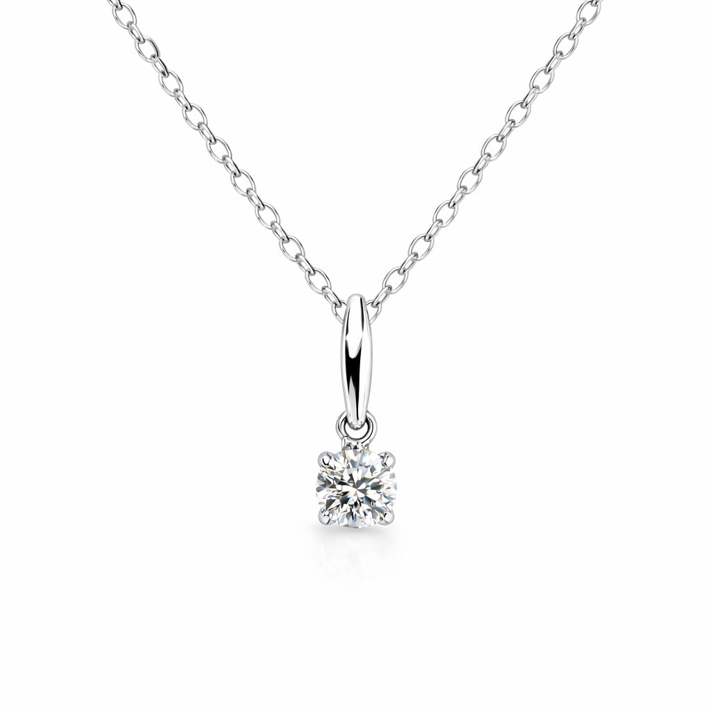 18ct White gold necklace with a claw set diamond pendant on a plain bale.