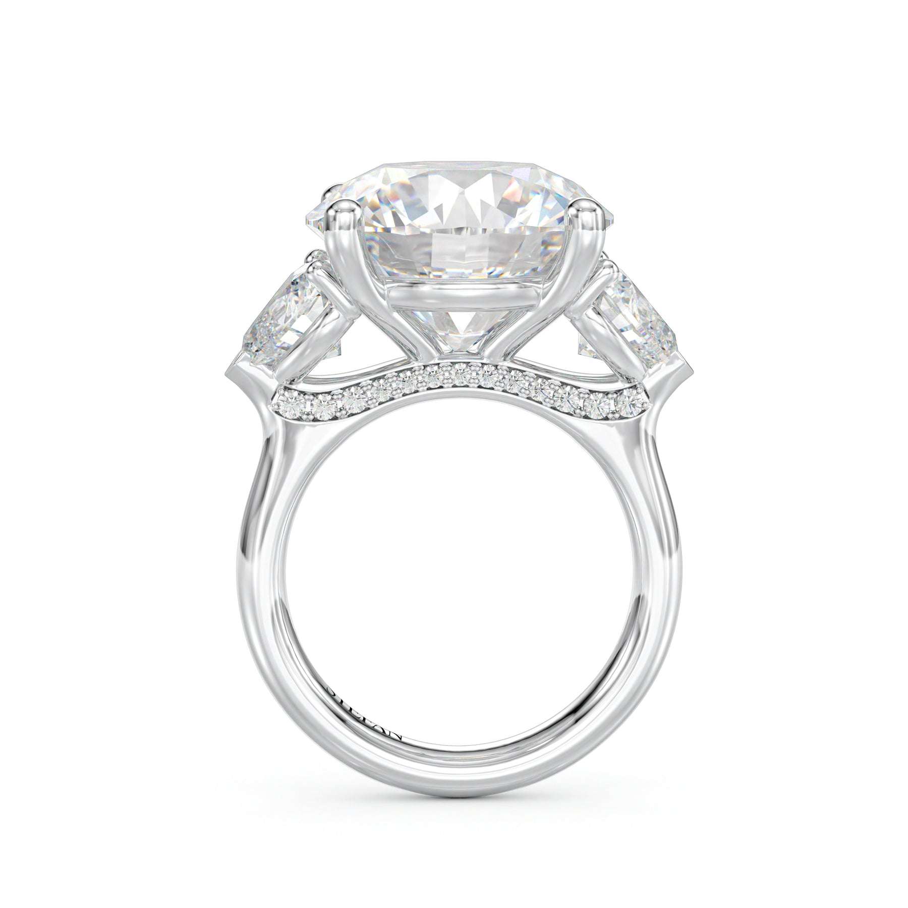 - Rounded band with round brilliant cut diamonds in basket