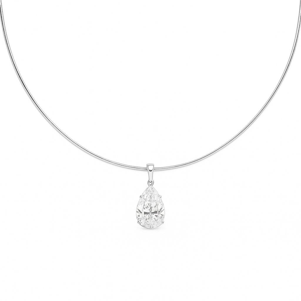 Pear diamond drop pendant, shown on an 18ct omega necklace. Please note, the omega necklace is sold separately.